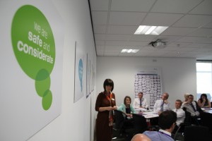 The event was planned for early September and we started work on it in June. We worked closely with the client on the plan for the day, which would be run twice, with 125 managers attending each day. They already knew the structure of the presentations to take place and who would be presenting which sessions. So one of our first tasks was to create the script for each of the presentations and workshop sessions. We did this through thorough consultation with the client. Whenever we undertake a project such as this it is imperative that we learn and understand as much as possible, as early as possible. So in this case we needed to understand everything about the history of the company, what led them to this point, the changes taking place, the new structure, vision, values and what is driving the business. We also needed to understand aspects such as the marketplace they operate in, the customer segments, products and services delivered to these customers and the company processes for delivering totheir customers.